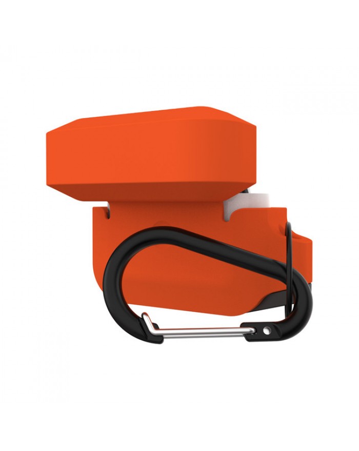 - Rugged weatherproof protection, detachable carabiner included, quick release button to access your pods access, lightning port & pairing button